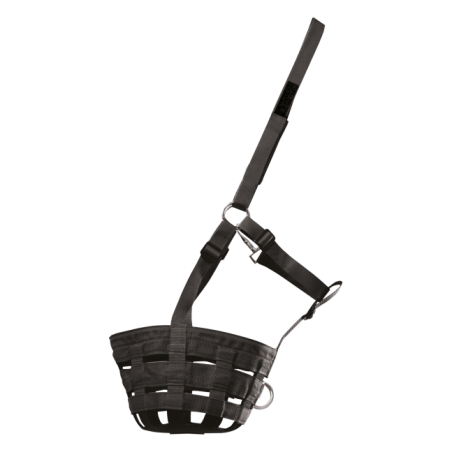 Muselière de qualité pour éviter une consommation excessive d’herbe ou en cas de maladie. La têtière est sécurisée d’un côté par un scratch de sorte à exclure tout danger en cas d’accrochage. La muselière peut être réglée en continu au niveau de la nuque pour un ajustement individuel. Sa conception aérée permet au cheval de respirer sans entrave et offre un grand confort, même par des températures élevées. Avec anneau de guidage.